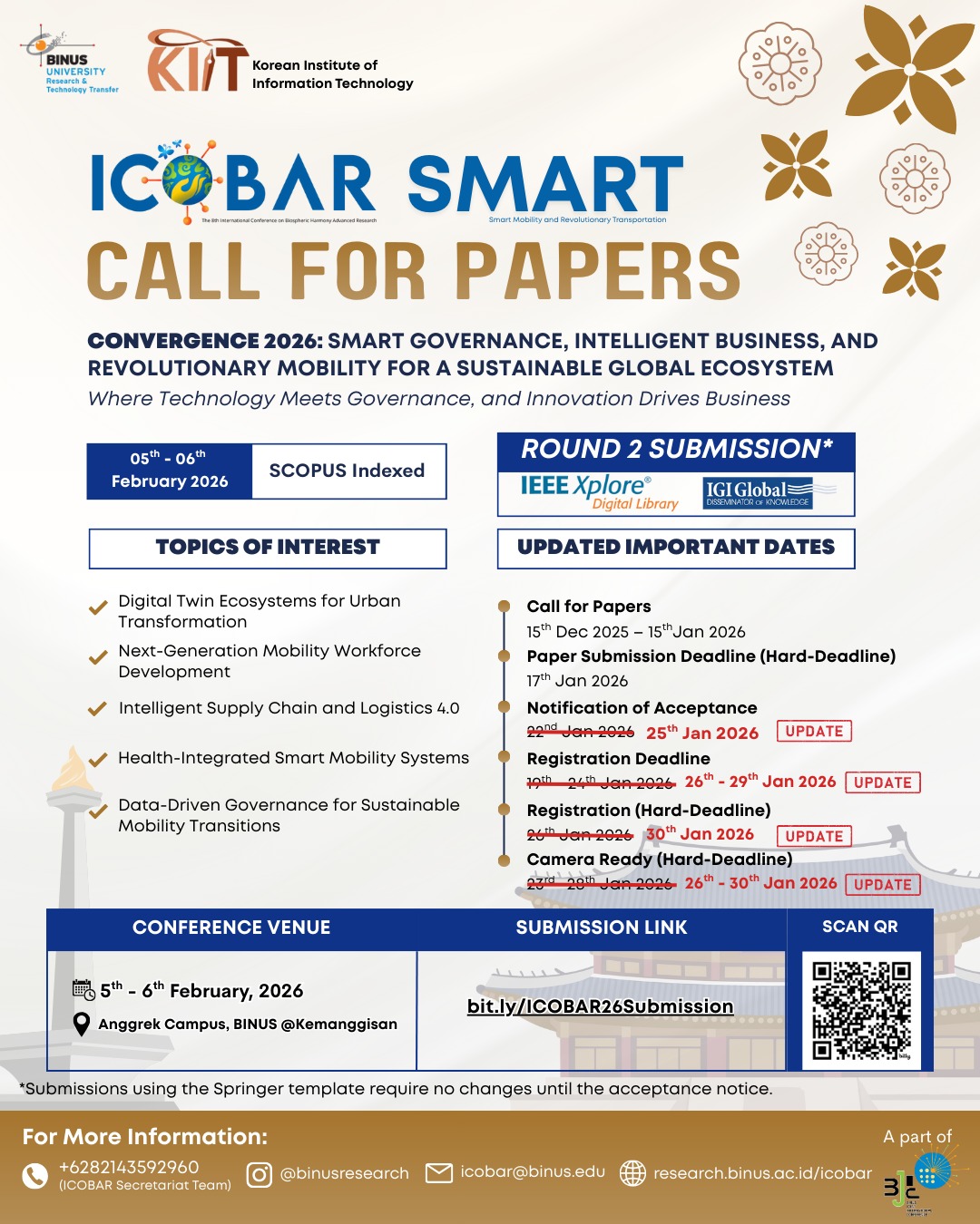 Through actionable dialogue and cross-sector collaboration, ICOBAR-SMART 2026 aims to generate practical frameworks, partnerships, and research directions that can be applied in real-world settings.