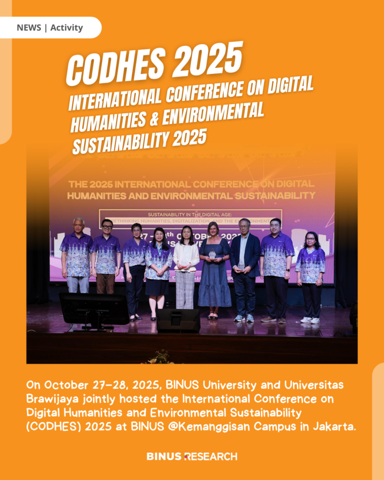 On October 27–28, 2025, BINUS University and Universitas Brawijaya jointly hosted the International Conference on Digital Humanities and Environmental Sustainability (CODHES) 2025 at BINUS @Kemanggisan Campus in Jakarta. Bringing together global scholars, the conference focused on the theme “Sustainability in the Digital Age: Rethinking Humanities, Digitalization, and the Environment,” emphasizing how digital transformation reshapes knowledge production and supports environmental stewardship.
