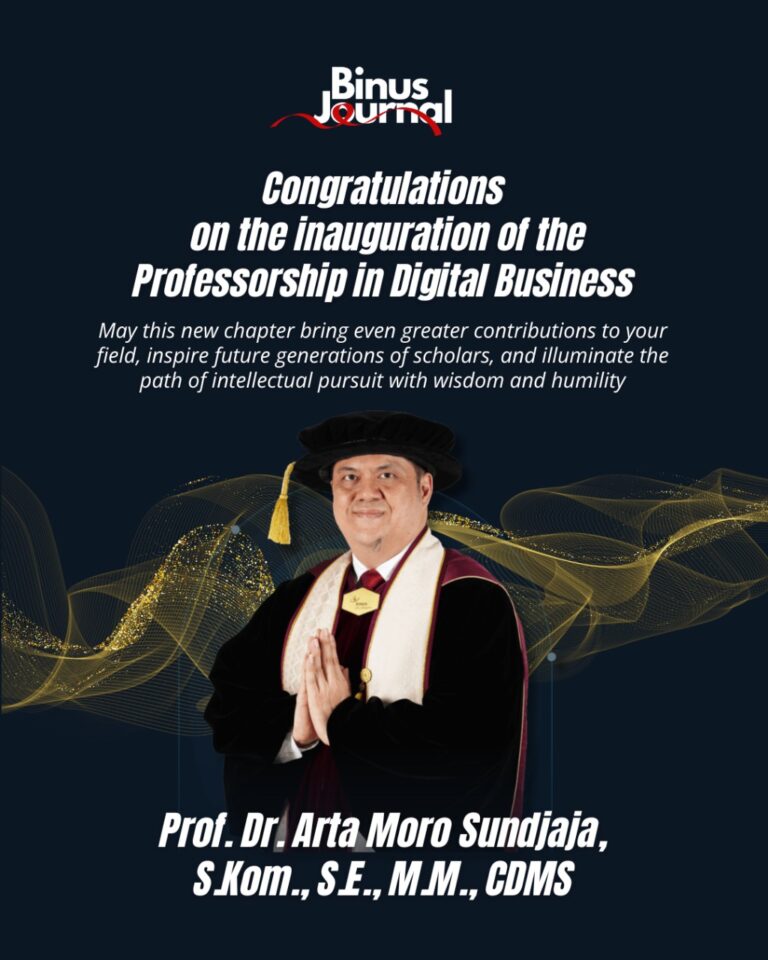 Prof. Dr. Arta Moro Sundjaja, S.Kom., S.E., M.M., CDMS embodies the spirit of academic leadership, innovation, and wisdom that continue to inspire future scholars.