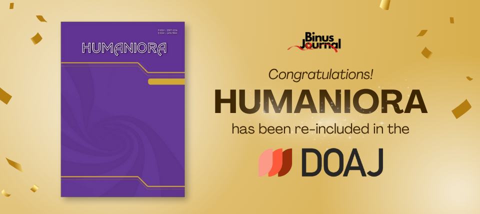 We are pleased to announce that Humaniora Journal has been re-included in the Directory of Open Access Journals (DOAJ) following the successful completion of the 2025 evaluation process.