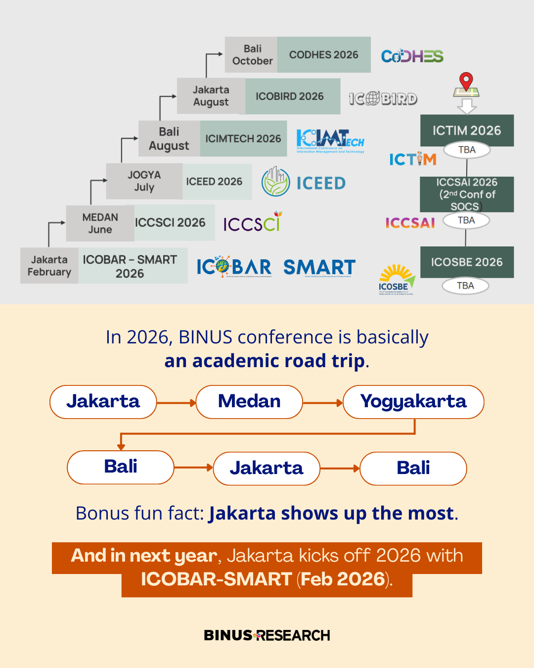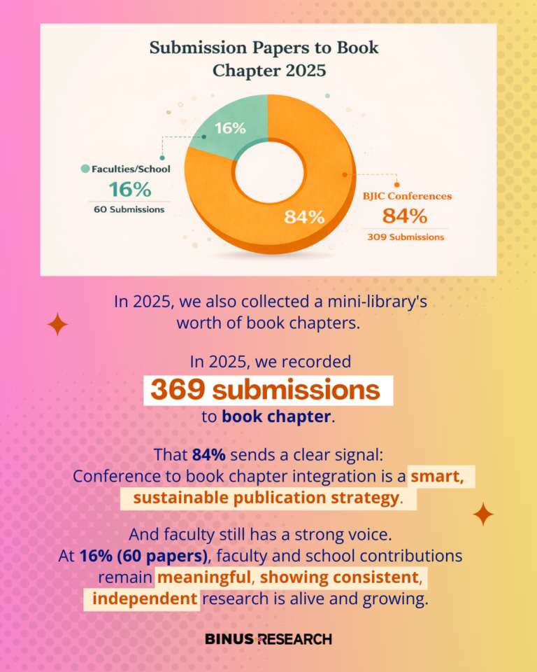 And the momentum is not only on stage. In 2025 alone, BINUS recorded 369 book chapters submissions, a mini library of knowledge that shows how conference to publication can become a sustainable strategy. Here’s to more collaborations, more mobility, and more research stories that travel further than we ever expected.