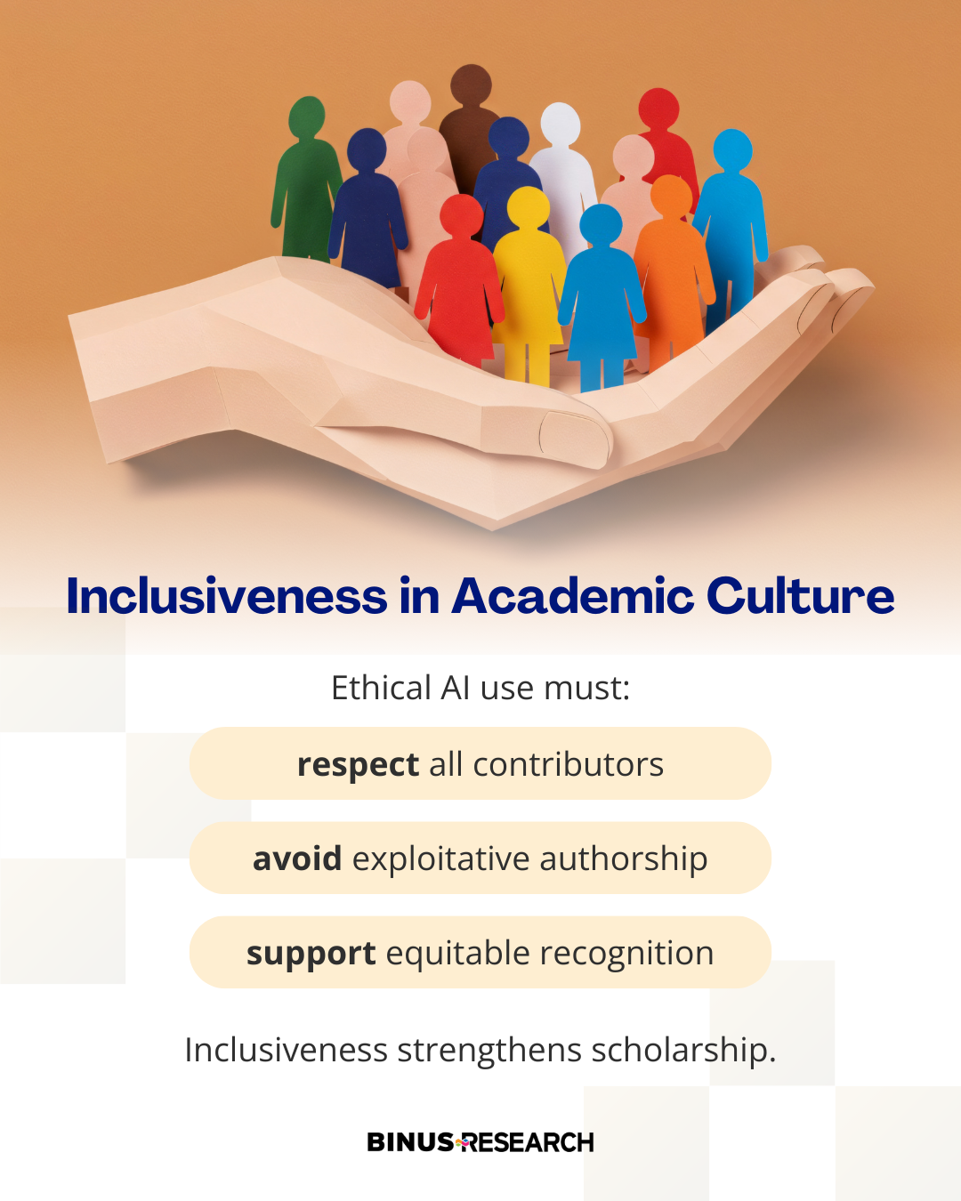 Inclusiveness strengthens academic culture by ensuring that recognition is fair, collaboration is ethical, and dignity is upheld across all forms of scholarly work.