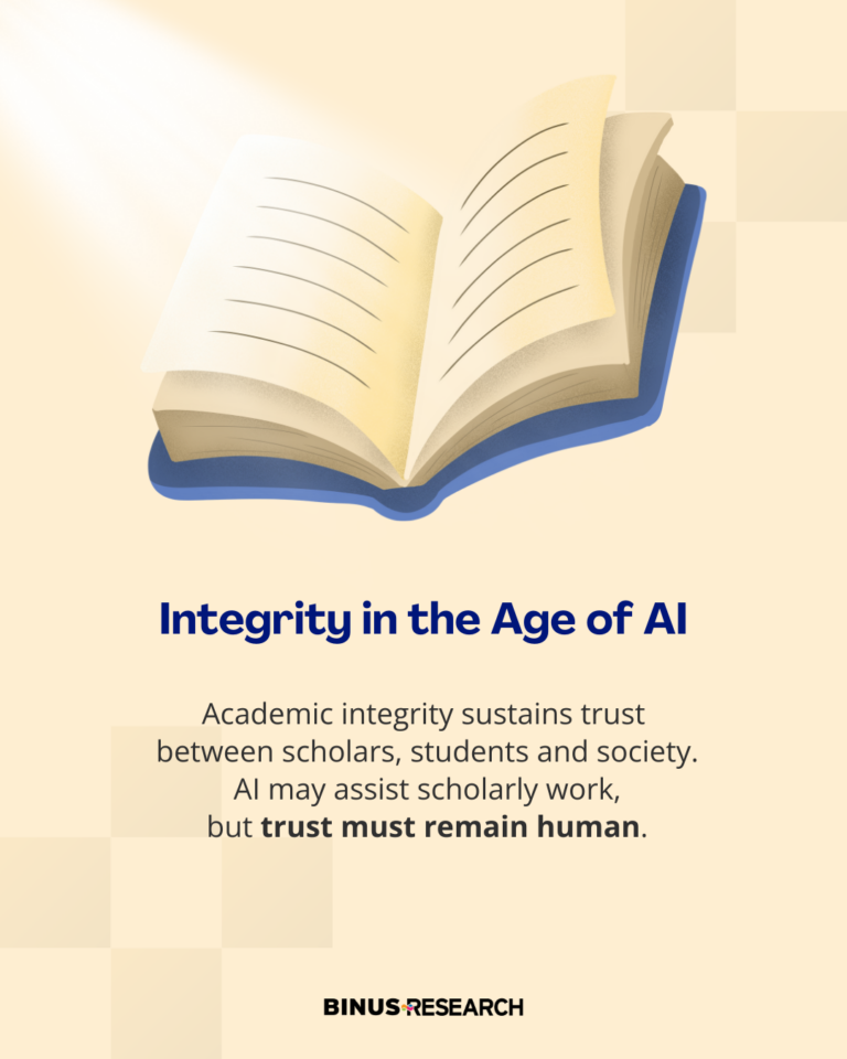 Seiring dengan hadirnya kecerdasan artifisial dalam karya ilmiah, integritas memastikan bahwa kontribusi akademik tetap jujur, terbuka, dan layak dipercaya. AI dapat mendukung proses akademik, namun kepengarangan, tanggung jawab, dan kepemilikan intelektual tetap berada pada manusia.